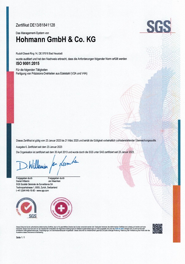 Unser Unternehmen ist seit März 2000 zertifiziert nach der DIN ISO 9001. Auf Kunden- wunsch erstellen wir Erstmusterprüfberichte und Prüfprotokolle.